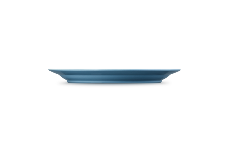 Brighten up your table with this classic stoneware dinner plate. It features a recessed base to keep liquids contained. That means fewer spills and more freedom to serve up all sorts of delicious dishes. The rim features Le Creuset's distinctive three-ring design ¨C a nod to those in the know.